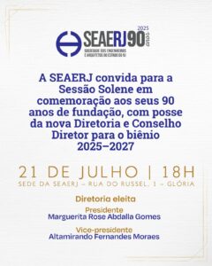 WhatsApp Image 2025-07-14 at 10.00.55 Postado por SEAERJ Data 14 de julho de 2025 Comentários 0 comentários Compartilhar: SEAERJ Você também pode se interessar Comunicado sobre prova de vida de aposentados e pensionistas do Estado 27 de fevereiro de 2026 SEAERJ apoia paralisação do serviço público em defesa da recomposição salarial 23 de fevereiro de 2026 SEAERJ apresenta à Prefeitura do Rio pleito de equiparação salarial para profissionais da área técnica 9 de fevereiro de 2026