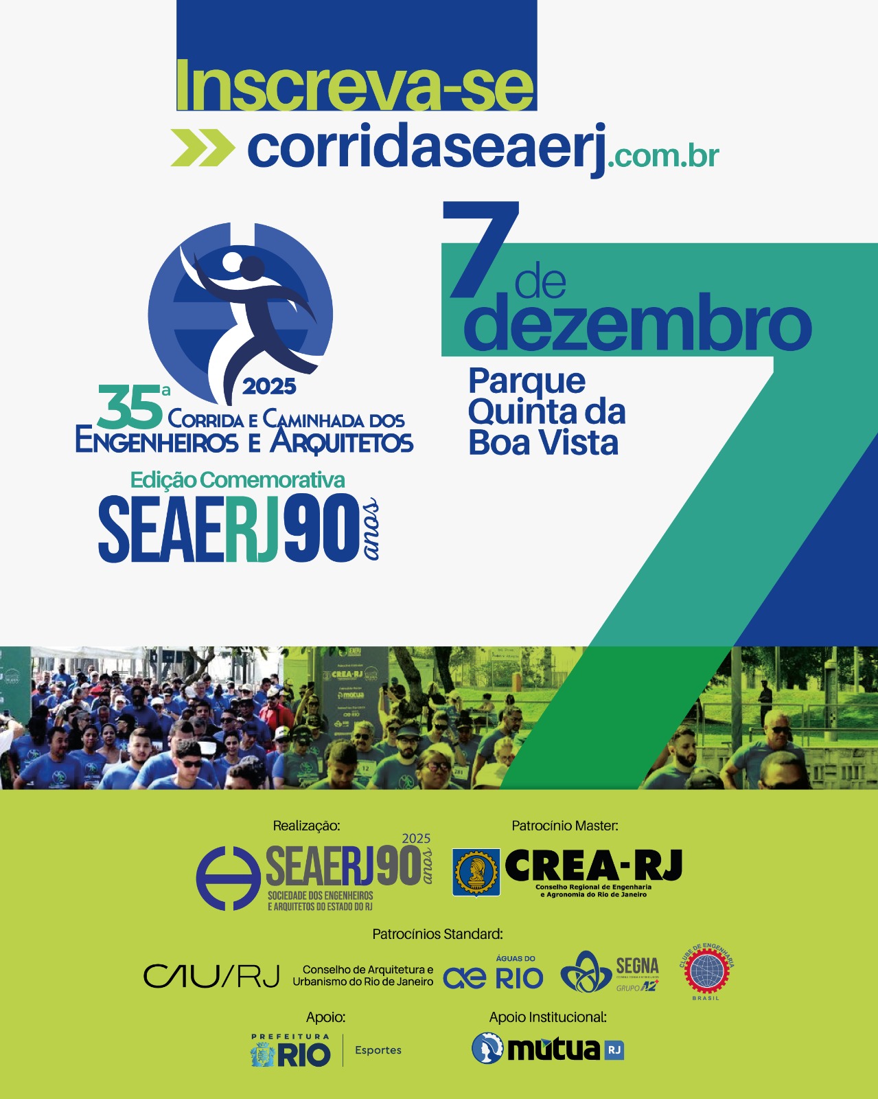 No dia 7 de dezembro de 2025, a Sociedade dos Engenheiros e Arquitetos do Estado do Rio de Janeiro (SEAERJ) promoverá a 35ª edição de sua tradicional “Corrida e Caminhada dos Engenheiros e Arquitetos”. Este ano, o evento terá um …